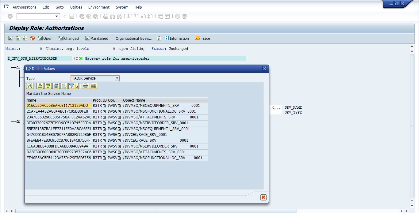 Table 1. S_SERVICE values Test Status Type HT (Hash Value for TADIR Object) Object Type IWSG (Gateway Service group metadata) IWSV (Gateway Business Suite Enablement – Service)