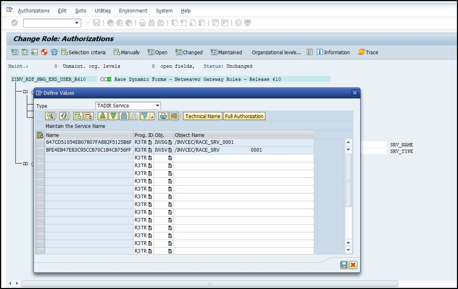 Update Service authorization object for RACE Dynamic Forms