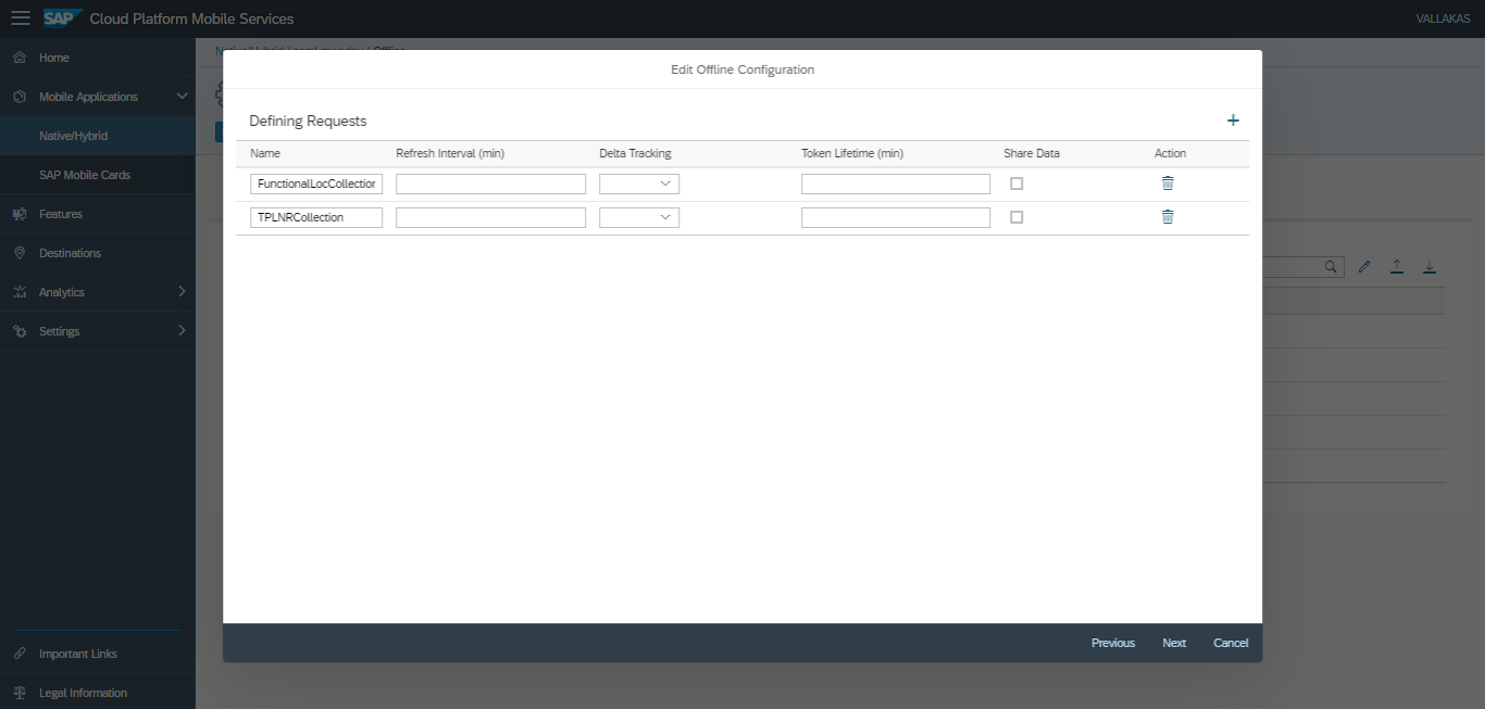 - In Mobile Services cockpit, navigate to Mobile Applications, Native/Hybrid.