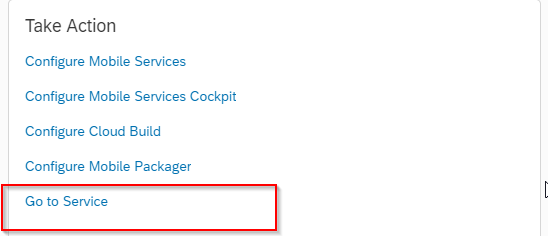 7. In the Service: Mobile Services, users – Overview screen, click Go to Service in the Take Action section.