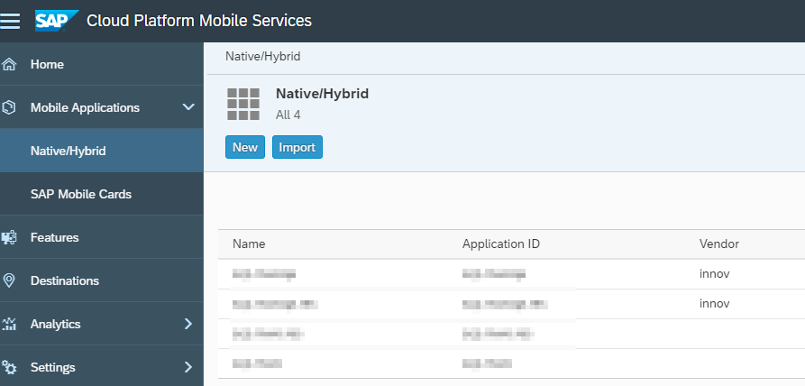9. In the Native/Hybrid screen, click the Application ID for which you need Push Notification.