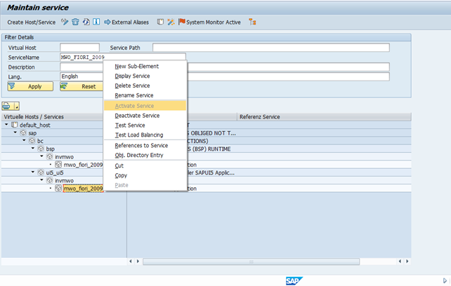 > INVMWO > mwo2009_fiori and click Activate Service.