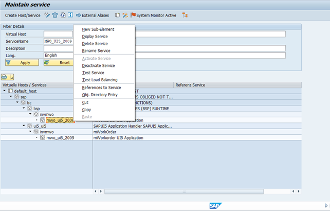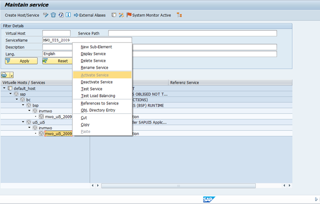 ui5_ui5 > INVMWO > mwo2009_UI5 and click Activate Service.