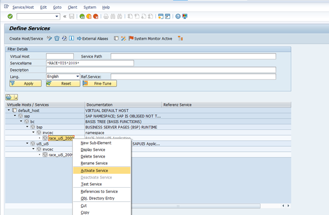 - Right-click RACE_UI5_2009 and click Activate Service.