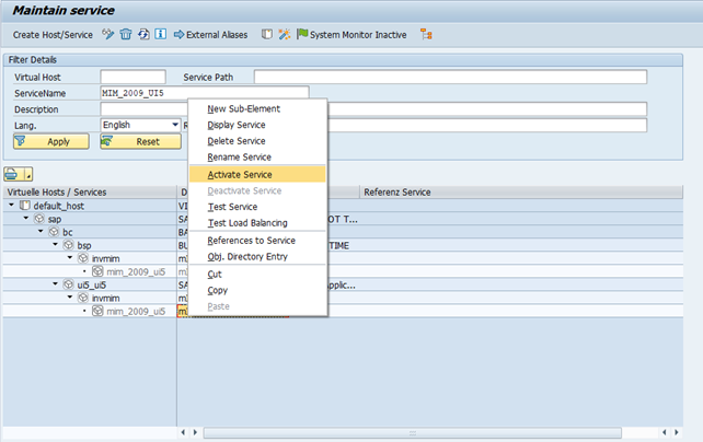 ui5_ui5 > INVMIM > mim_ui5_2009 and click Activate Service.