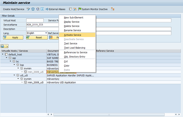 INVMIM > mim_UI5_2009 and click Activate Service.