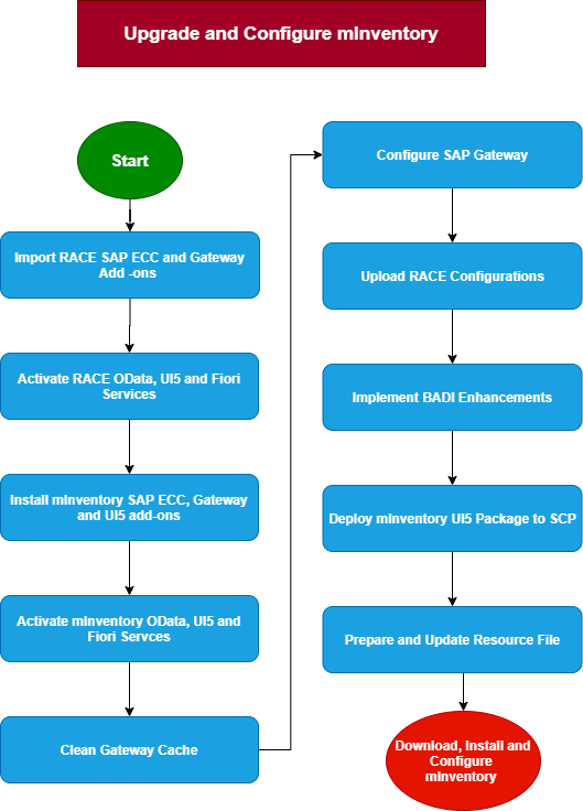 Once you complete the pre-upgrade requirements, begin mInventory upgrade. The following flow gives you an overview of the steps involved in upgrading mInventory.