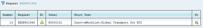 Enter the transport number in the Transp. Request field and confirm by pressing