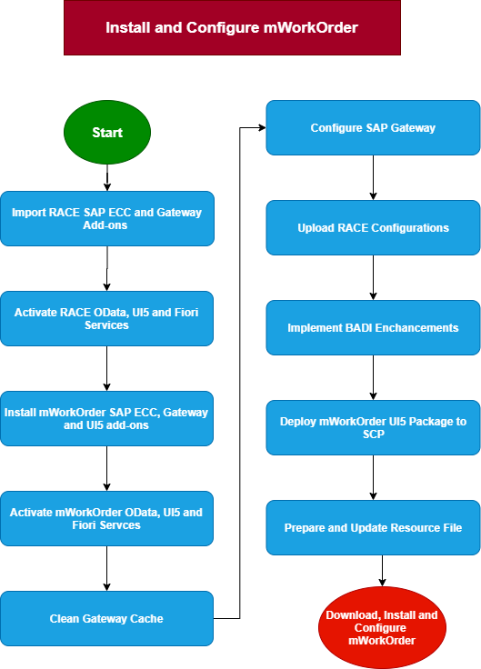 Once you complete all pre-installation requirements, begin mWorkOrder installation. The following flow gives you an overview of the steps involved in installing mWorkOrder.