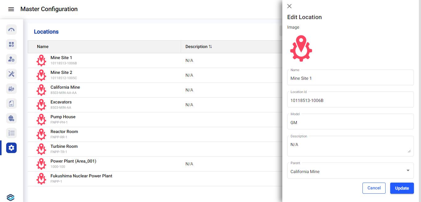 2. In the Edit Location window, update the details as required and click Update.