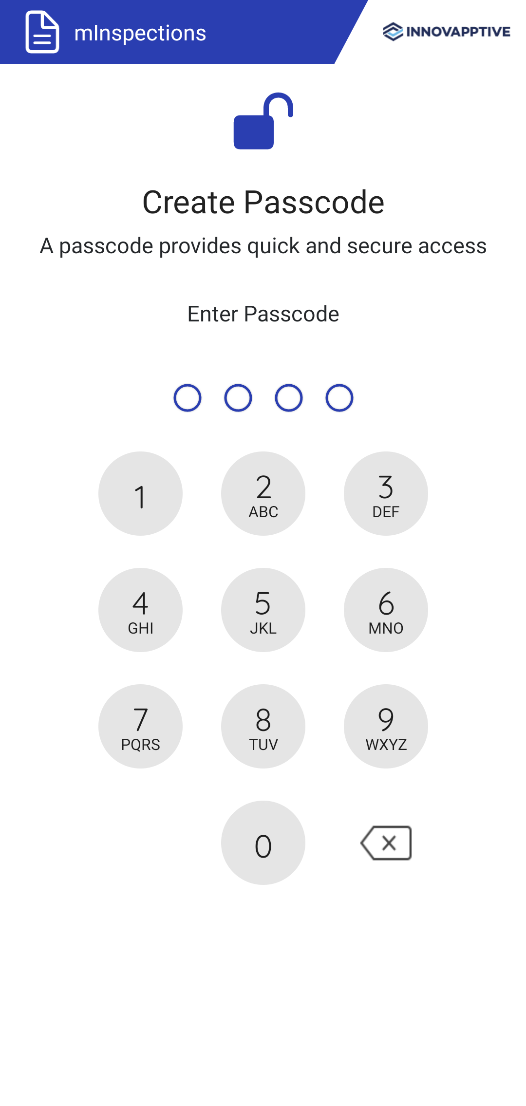 This section describes how to log into the mInspections application and configure passcode, enable touch ID and face ID.
