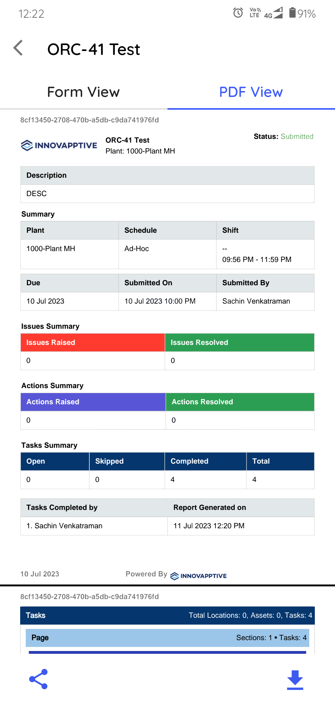 You can generate, view, share, and download the submitted inspections in PDF format. This helps share critical observations related to the round data with stakeholders.