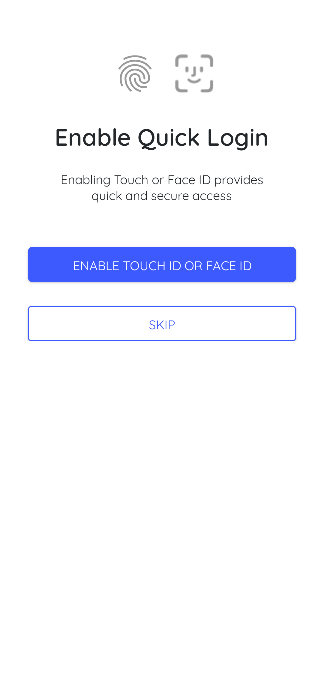 - Enable Face or Fingerprint identification for login access. You can enable this on the device by tapping Enable Touch ID or Face ID in the Enable Quick Login screen.