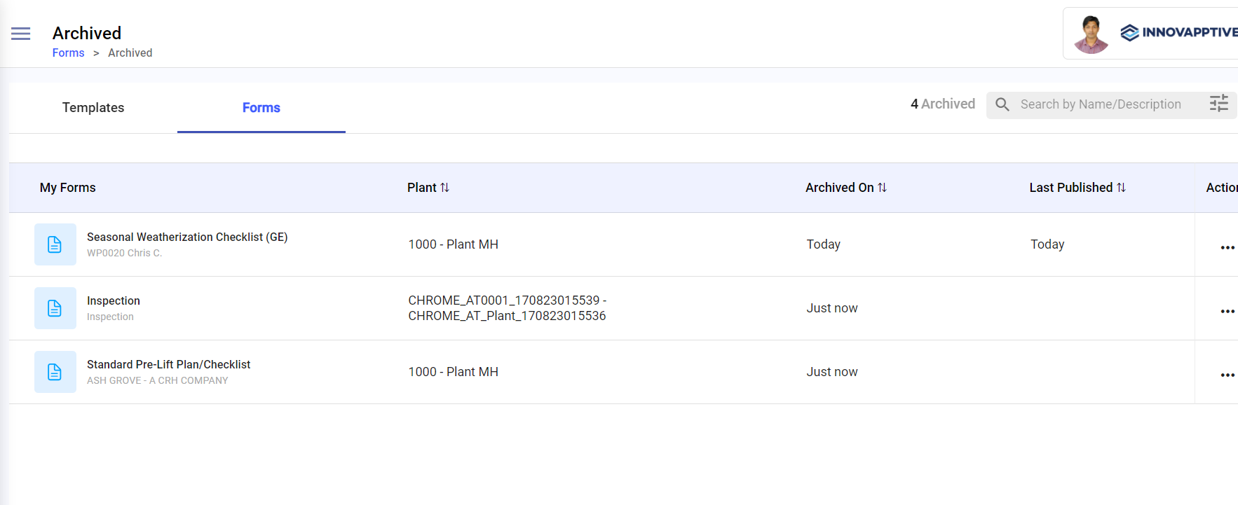 - Archived: The Archived section lists all the archived forms. It