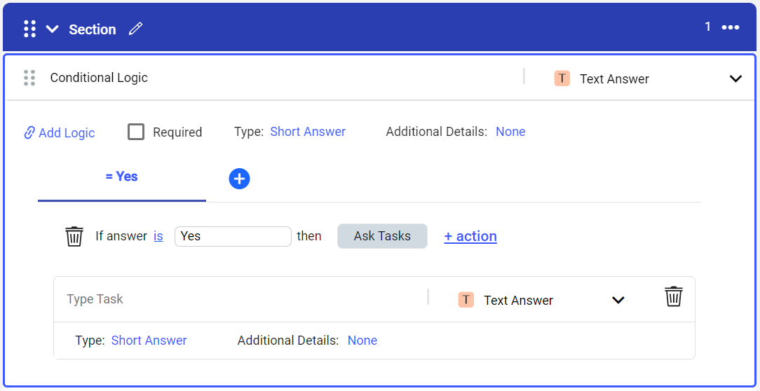 - Select the Text Answer value from the Responses drop-down next to the question.