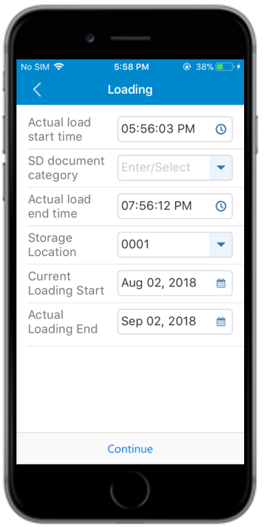 - Actual Loading End: The date on which loading is completed. This value is auto-populated. Tap to modify the date.