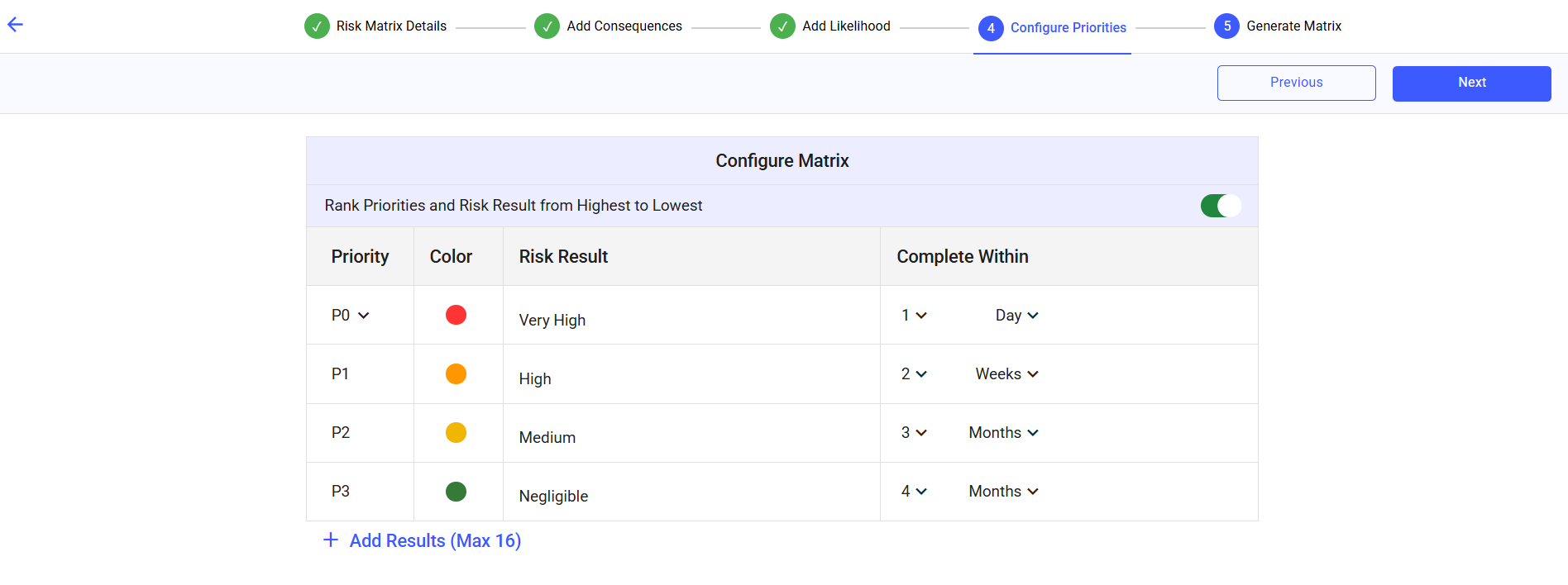- Define up to 5 consequence categories (e.g., People, Assets,
