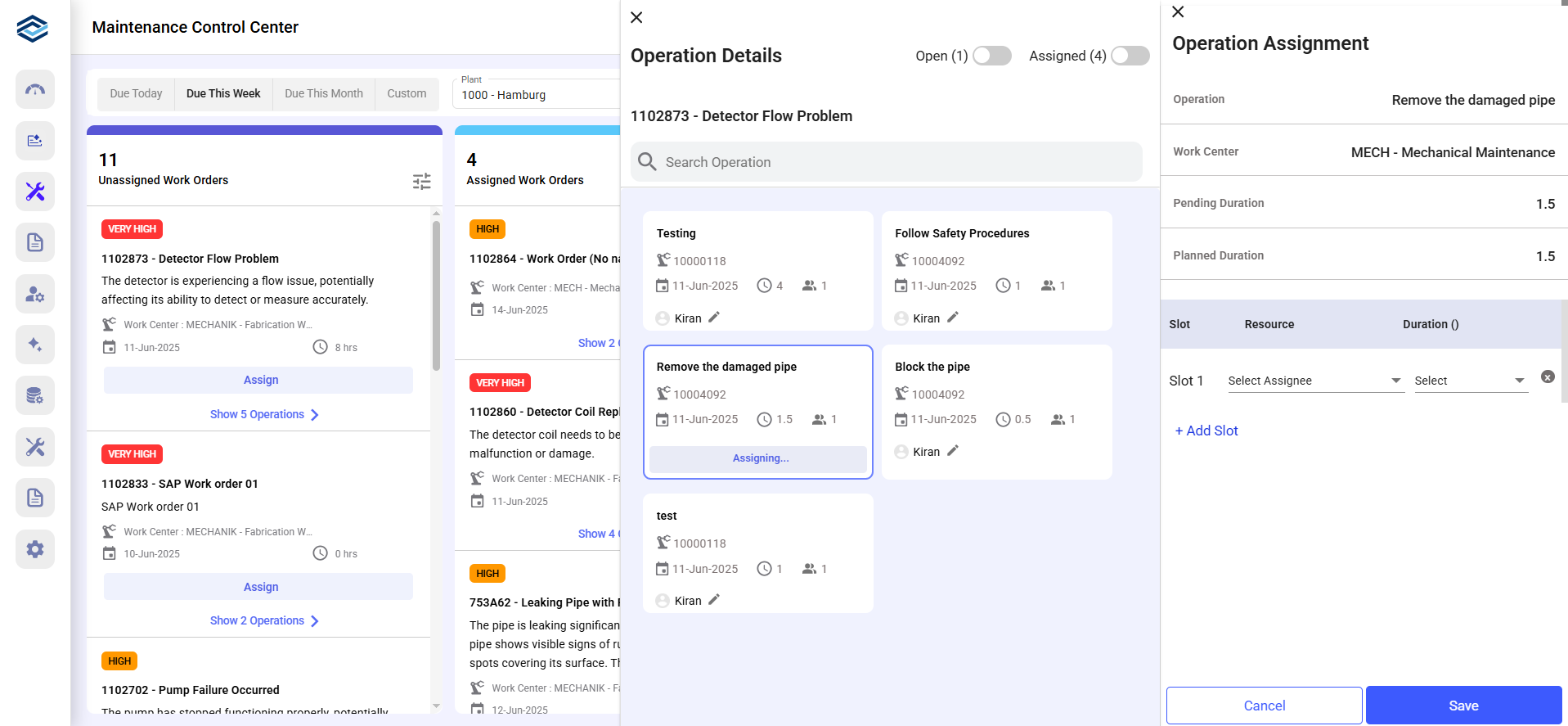 You can assign work orders and operations within a work order to different technicians for more granular task management.