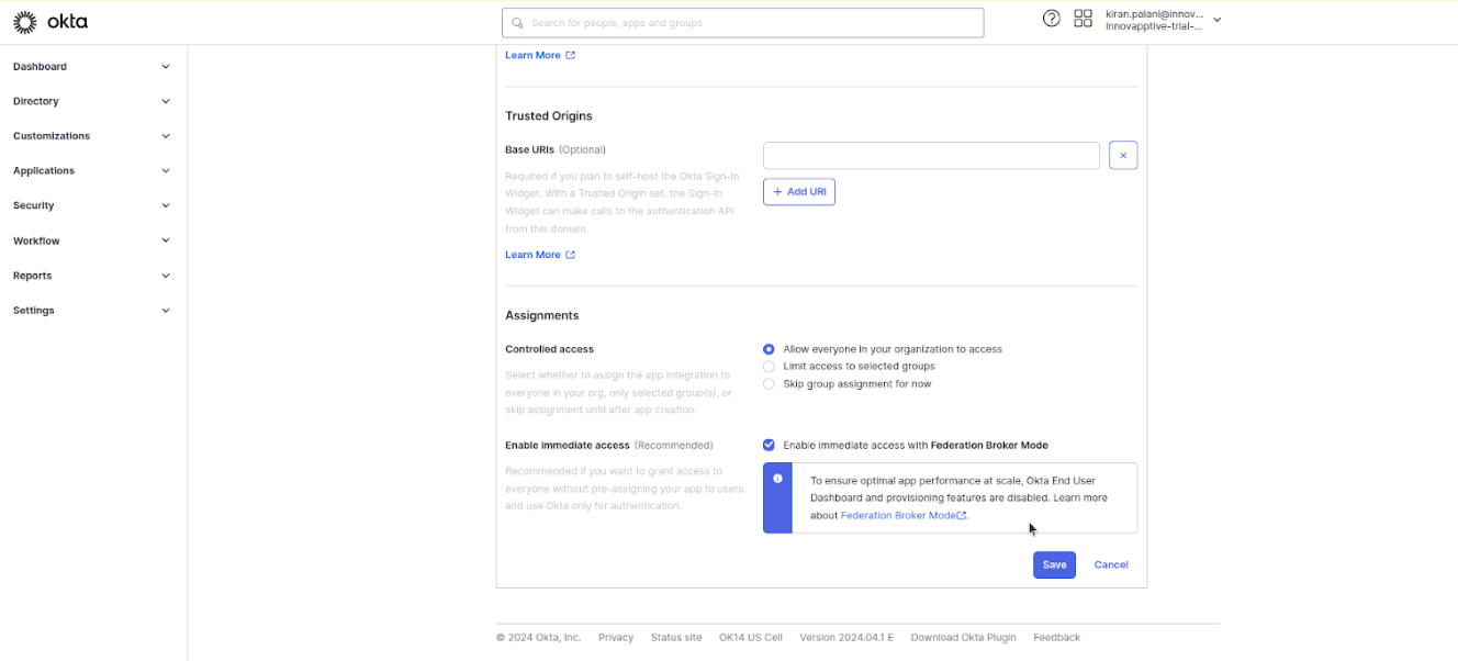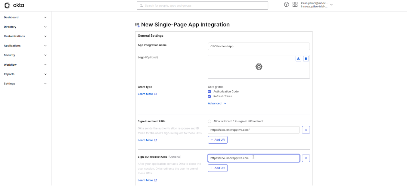 Update Sign In and Sign Out URI’s with tenant specific URI’s.