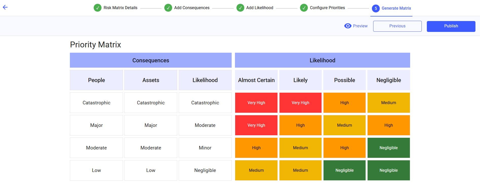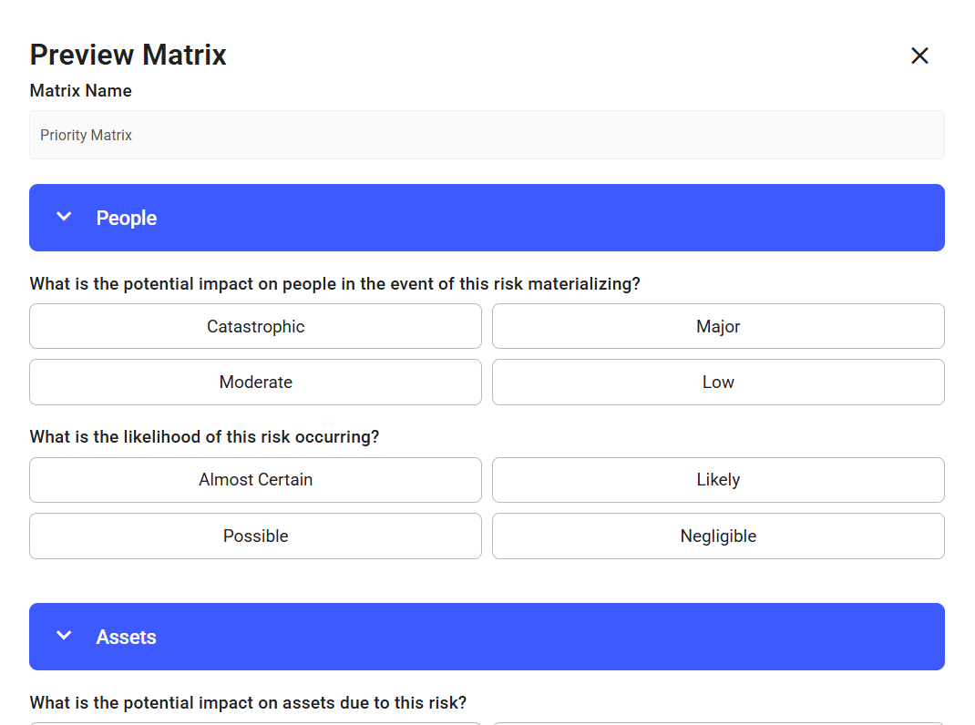 - Click Preview to view risk matrix in its final