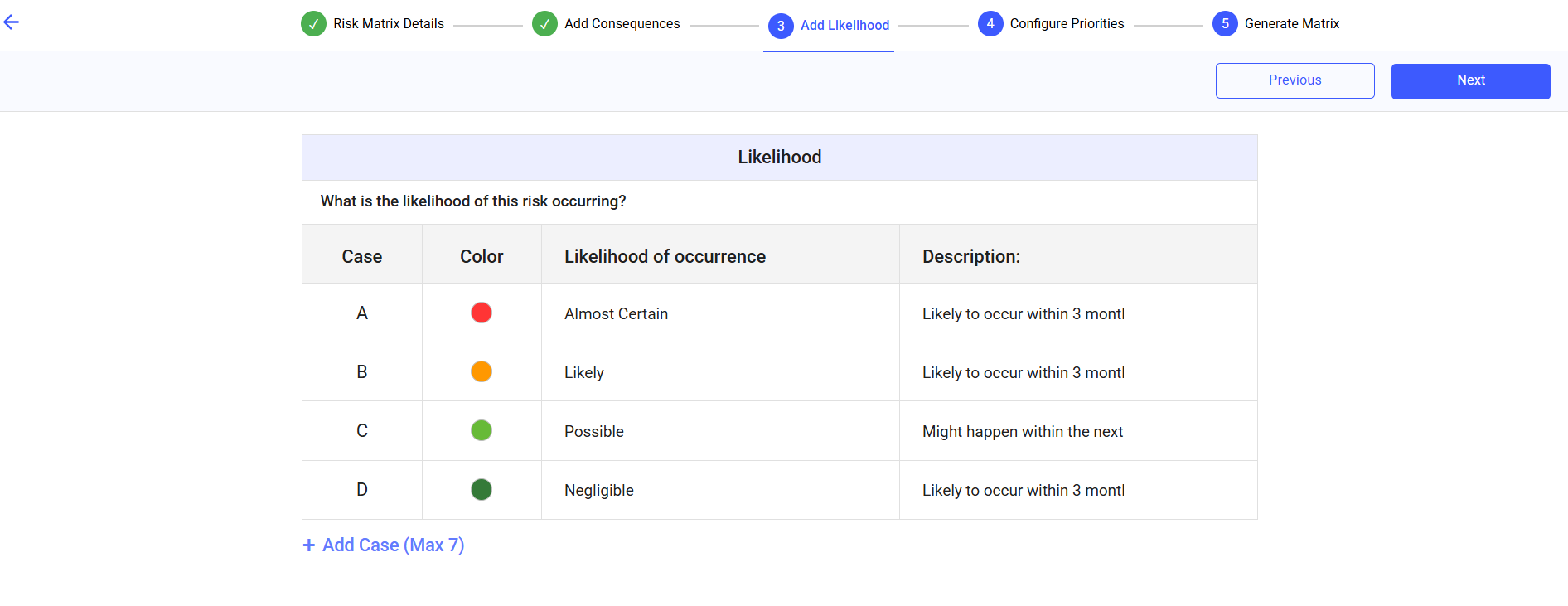 - Define scenario in the Likelihood of occurrence column.