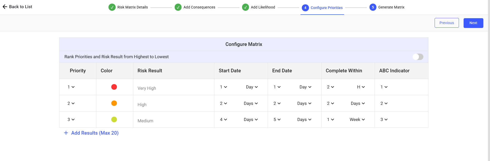 In the Configure Priorities screen, configure