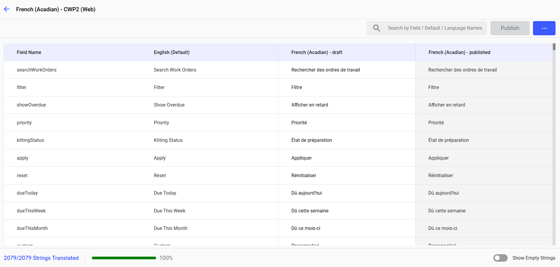 Note:Select the Show Empty Strings toggle at the bottom to quickly view the empty strings. -