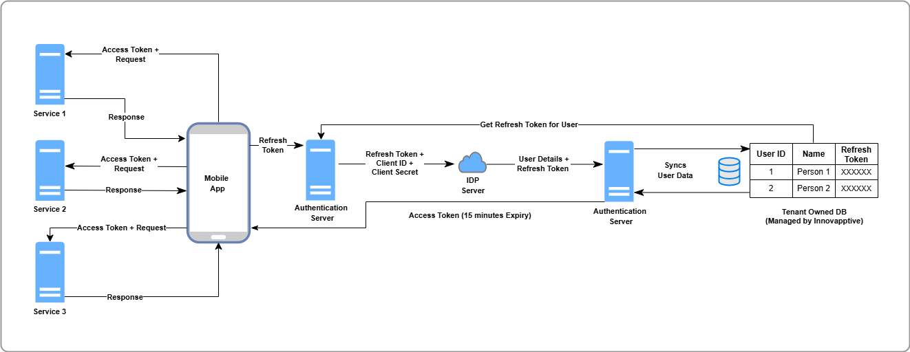 - During the refresh call, the app also submits the SSO-issued refresh token to the Auth Server.