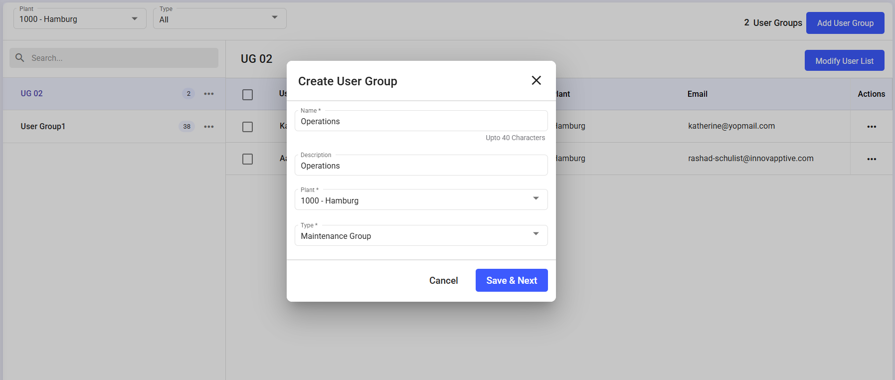Figure 2. Create User Group