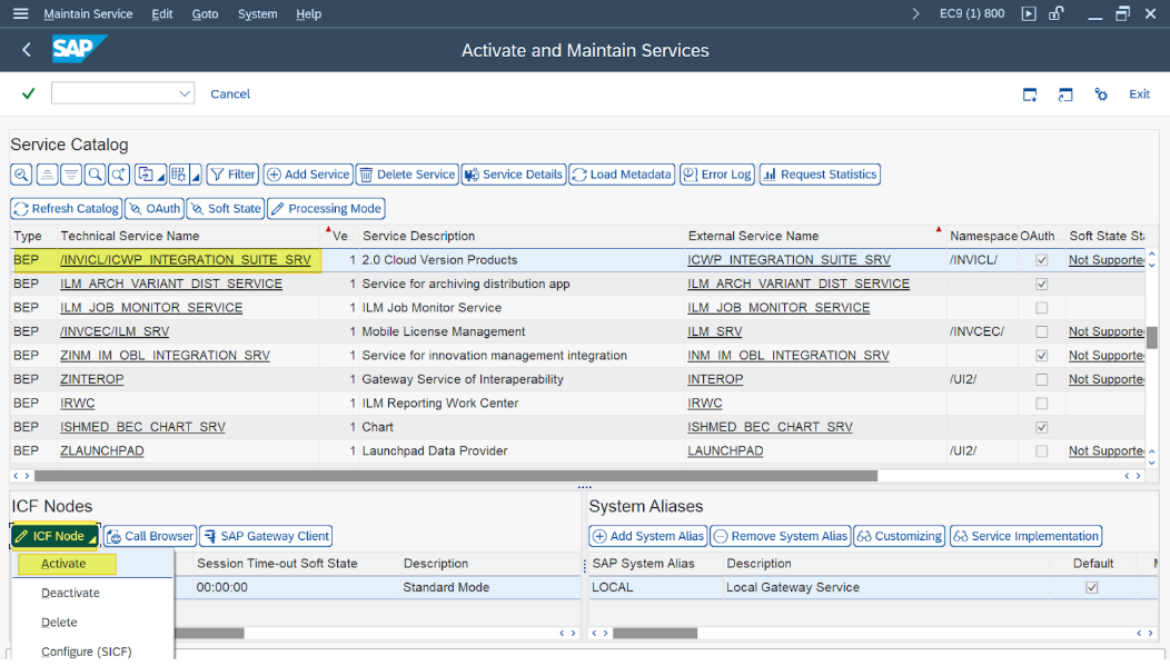 - Locate the service /INVICL/ICWP_INTEGRATION_SUITE_SRV/.
