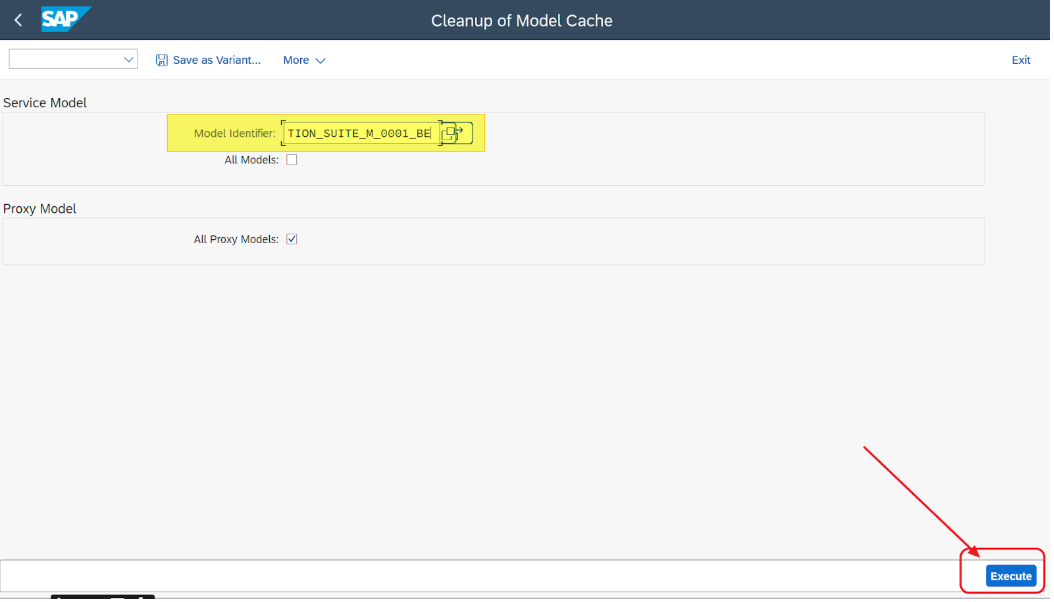 - Select Cleanup Cache for /INVICL/* Models and click Execute.