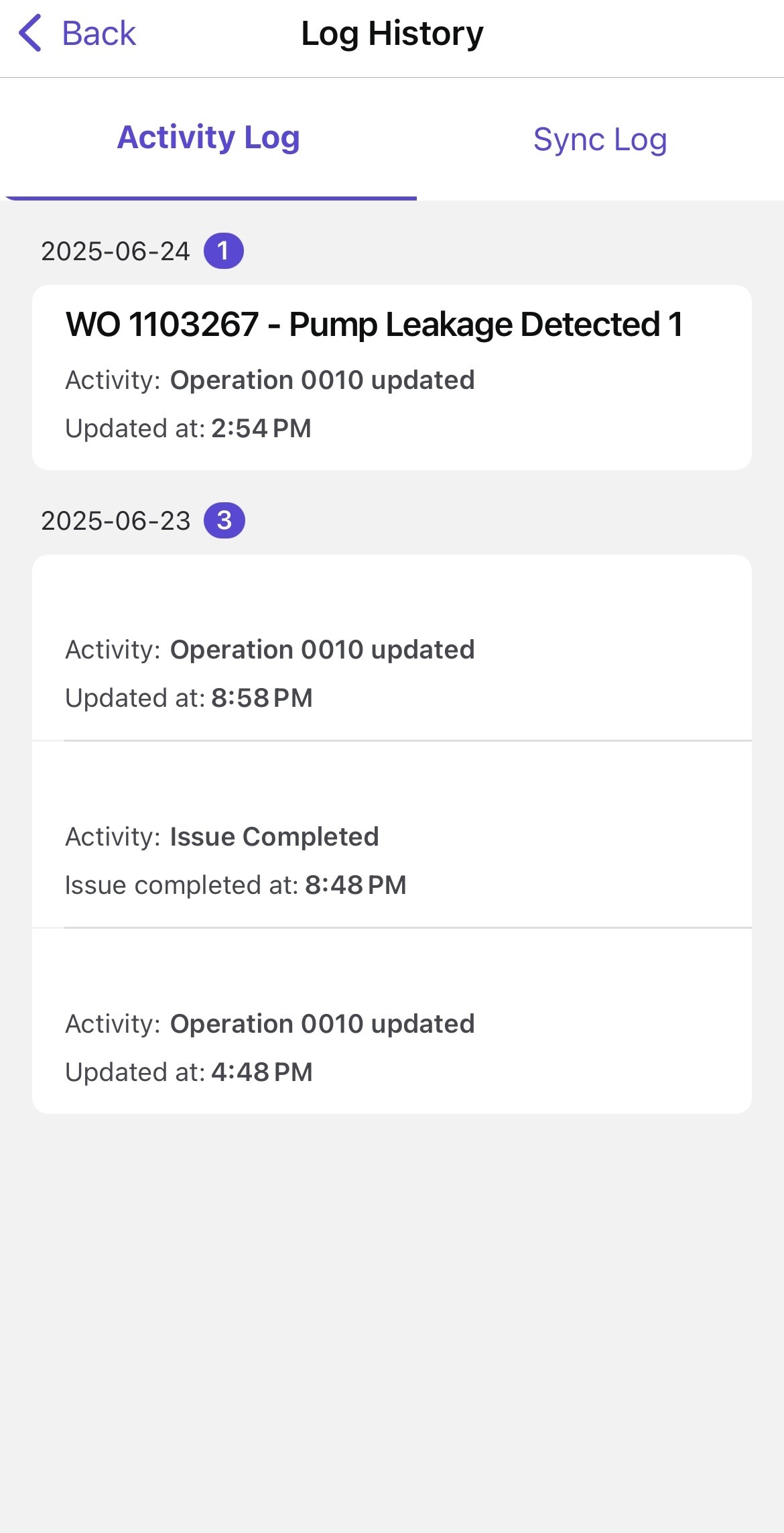 • Object ID and Title: Indicates the specific object related to the activity (e.g., Issue, Work Order, Operation, Measuring Point, Timesheet ID).