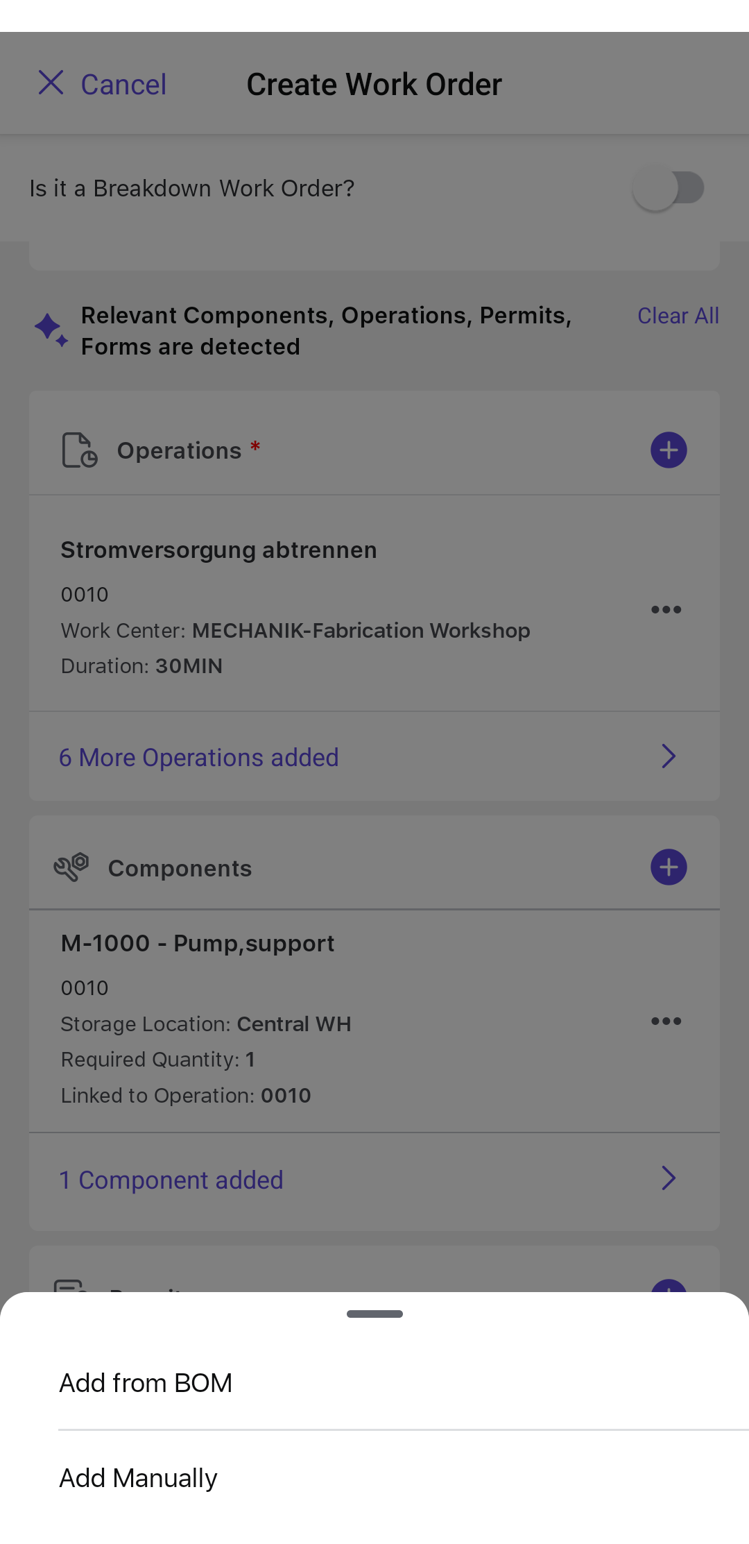 In many maintenance tasks, components such as spare parts, tools, and consumables are required to complete a work order. Adding components ensures technicians have the necessary materials before starting the job, reducing delays and improving efficiency.