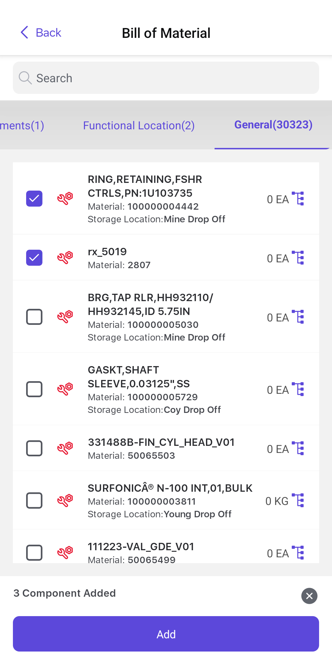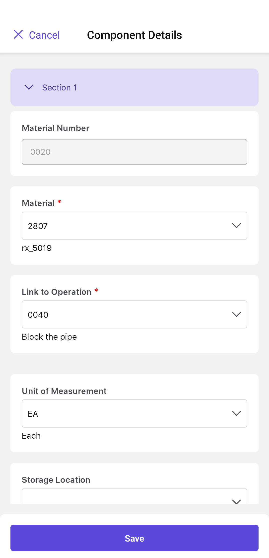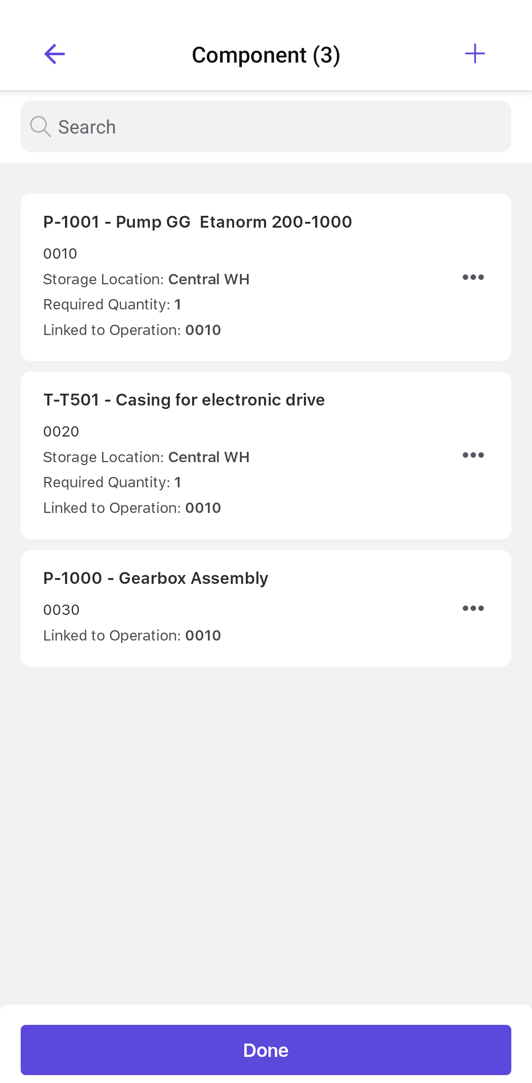 - Once all the component details are filled in, tap Done.In the Components screen, you can tap the More