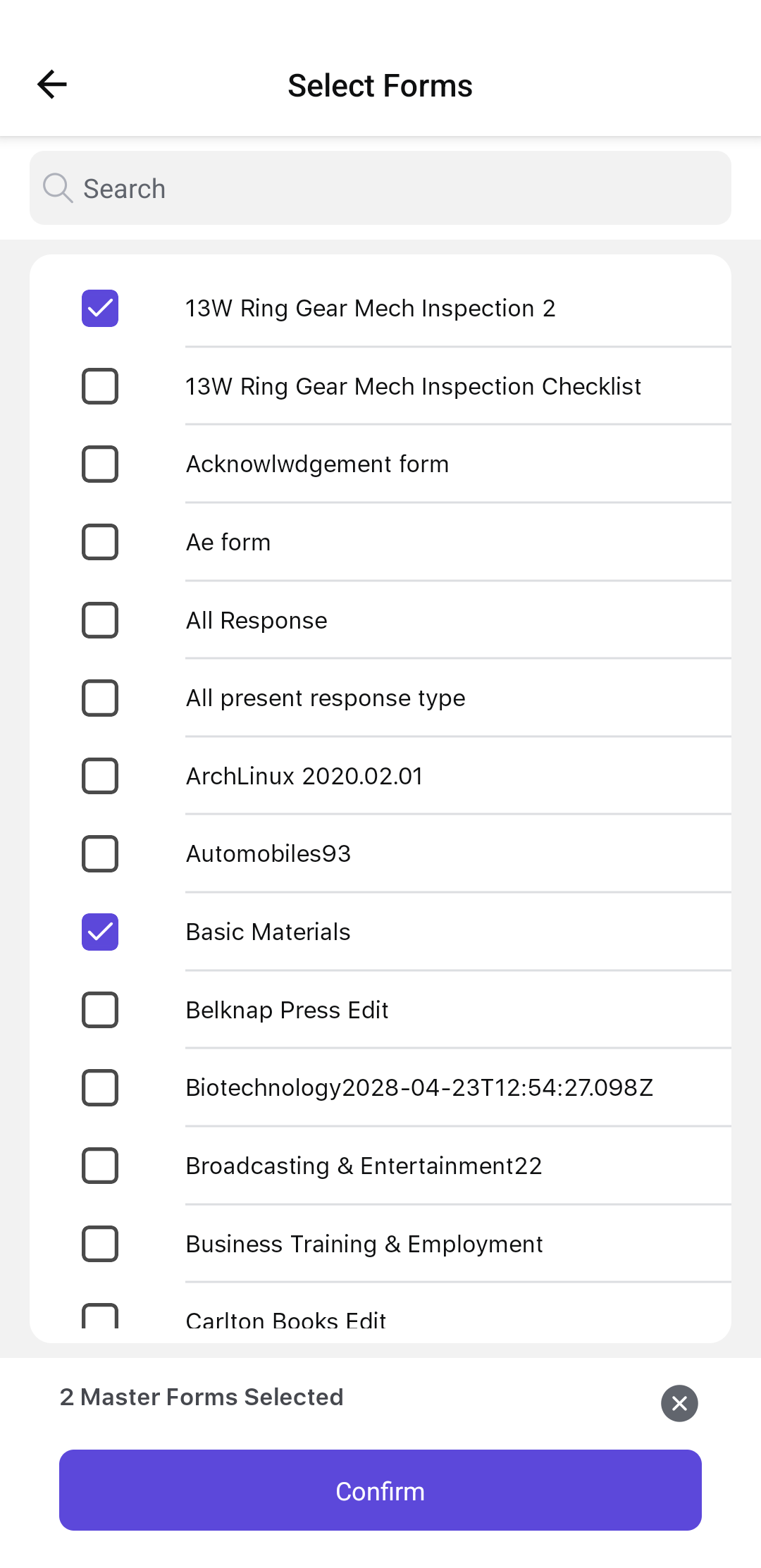 - In the Select Forms screen, select the relevant form and tap Confirm.