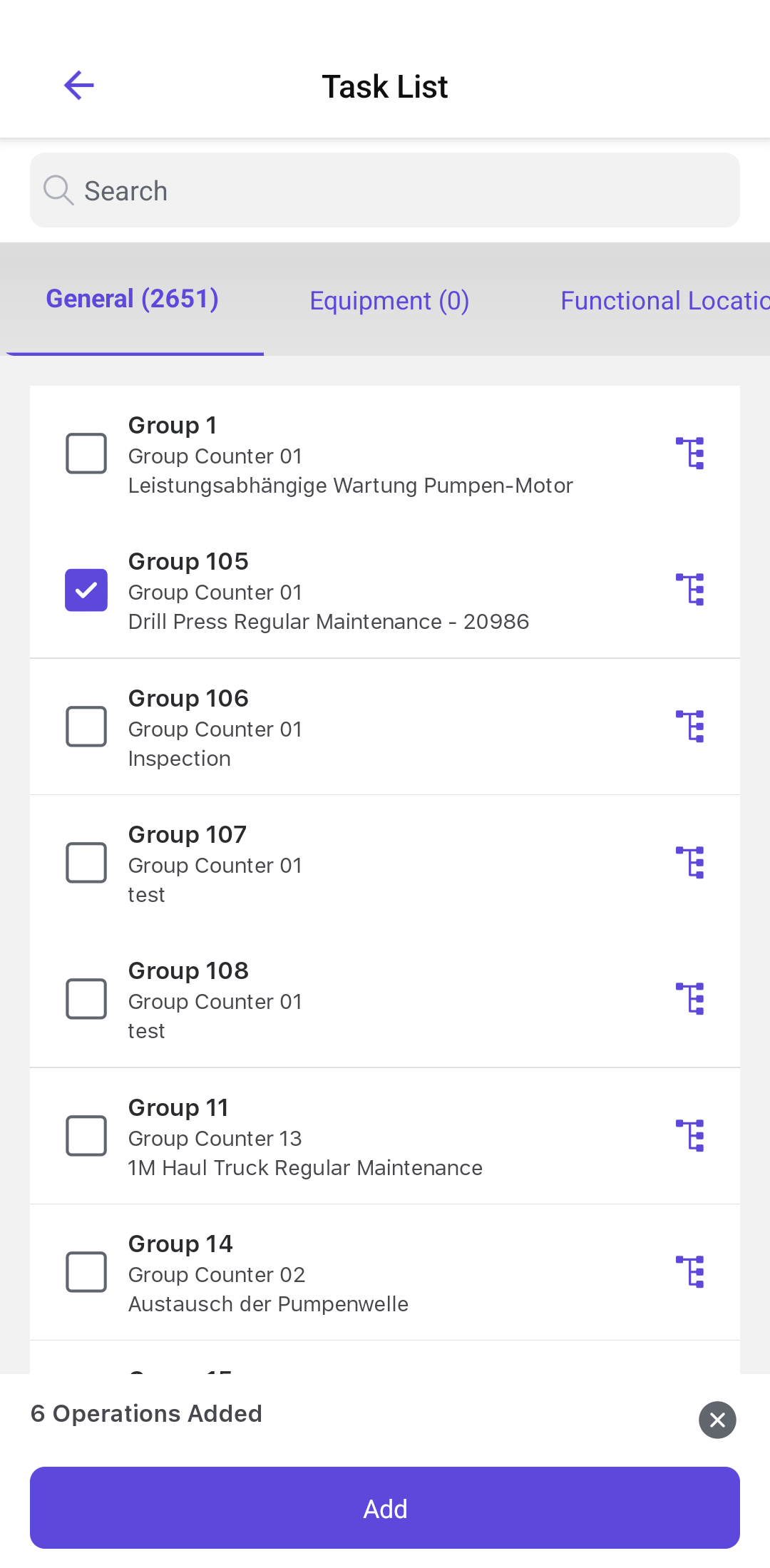 - If a tab (General, Equipment, or Functional Location) has no operations, it is hidden.