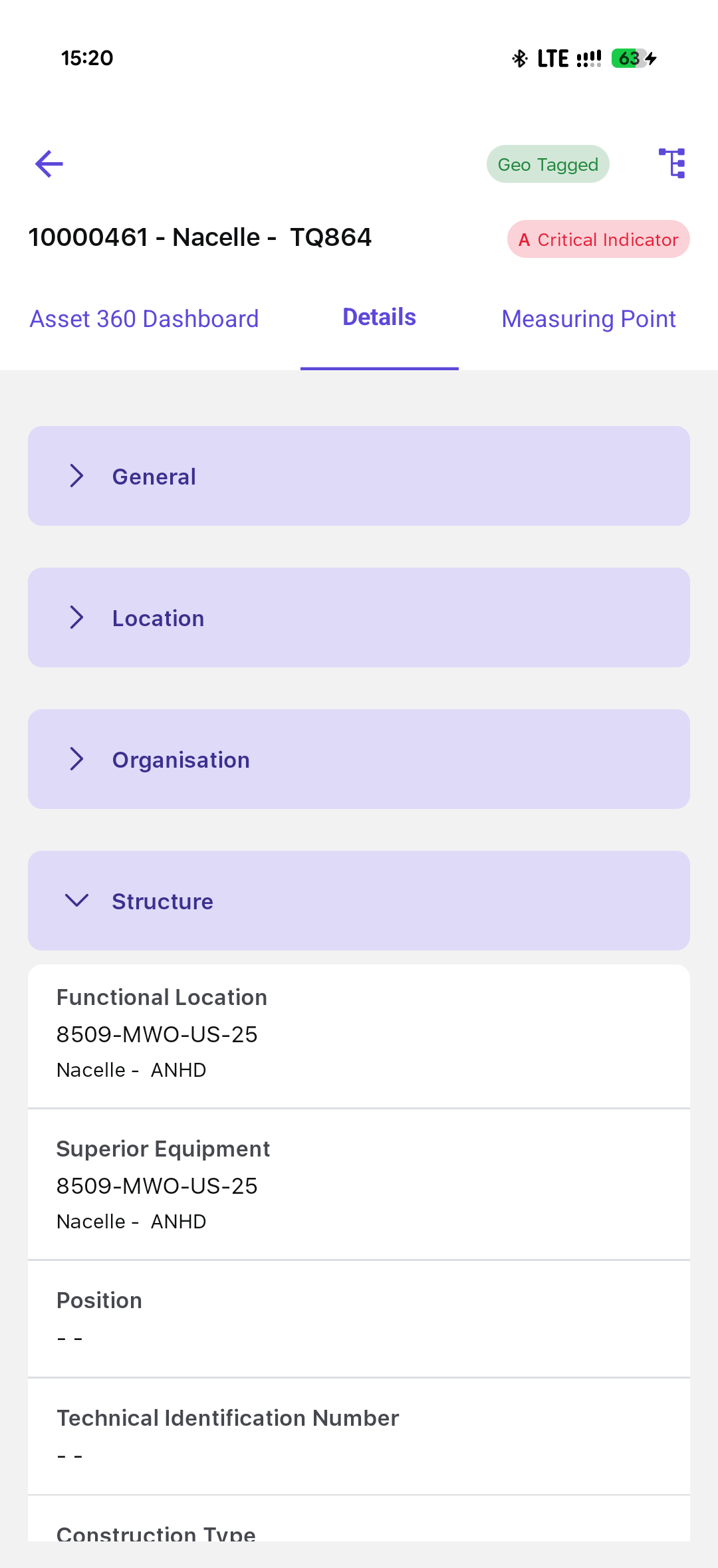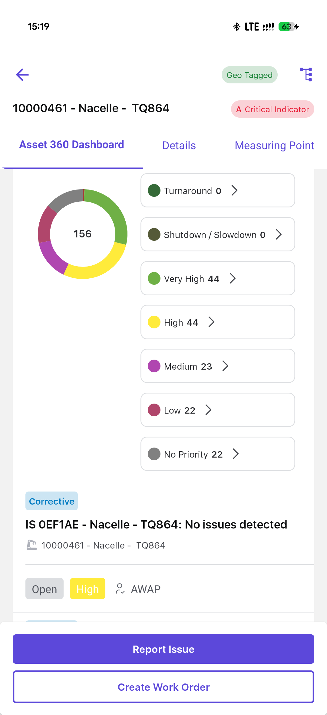 You can tap Set Geo Tag on the top and send location coordinates while creating issues or work orders. This enables AI to suggest the most accurate equipment based on real-time context. If the equipment is already geo-tagged, the Geo Tagged status is displayed.
