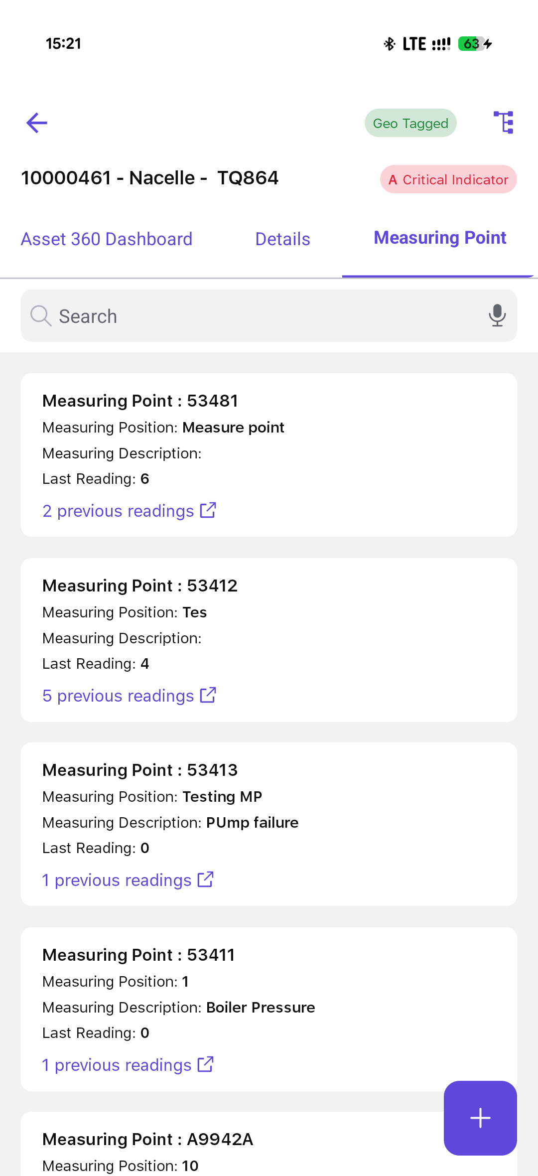 - Measuring Point ID, Position, Description, Last Reading, and Previous Readings Count.