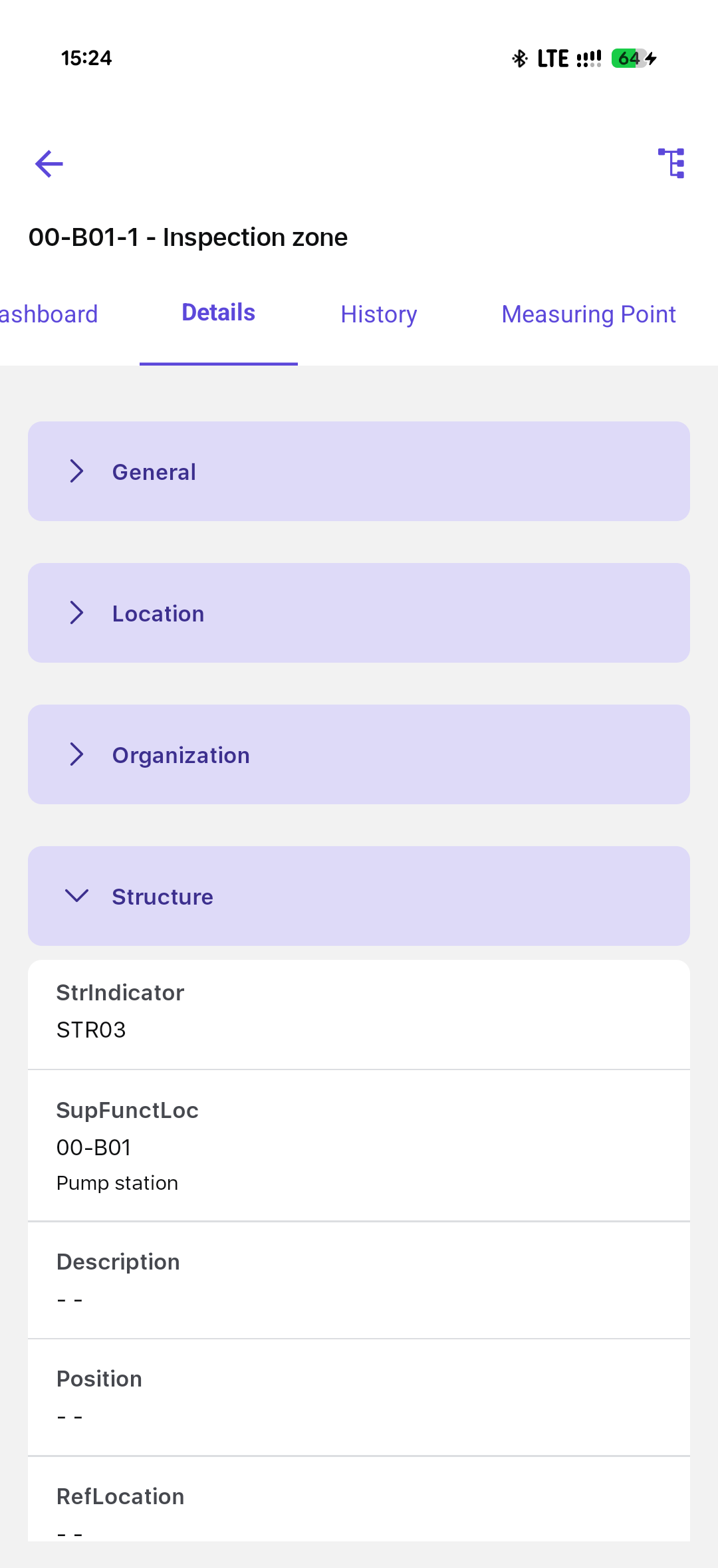 - Attachments (DMS): Displays Document Management System (DMS) files associated with the functional location.