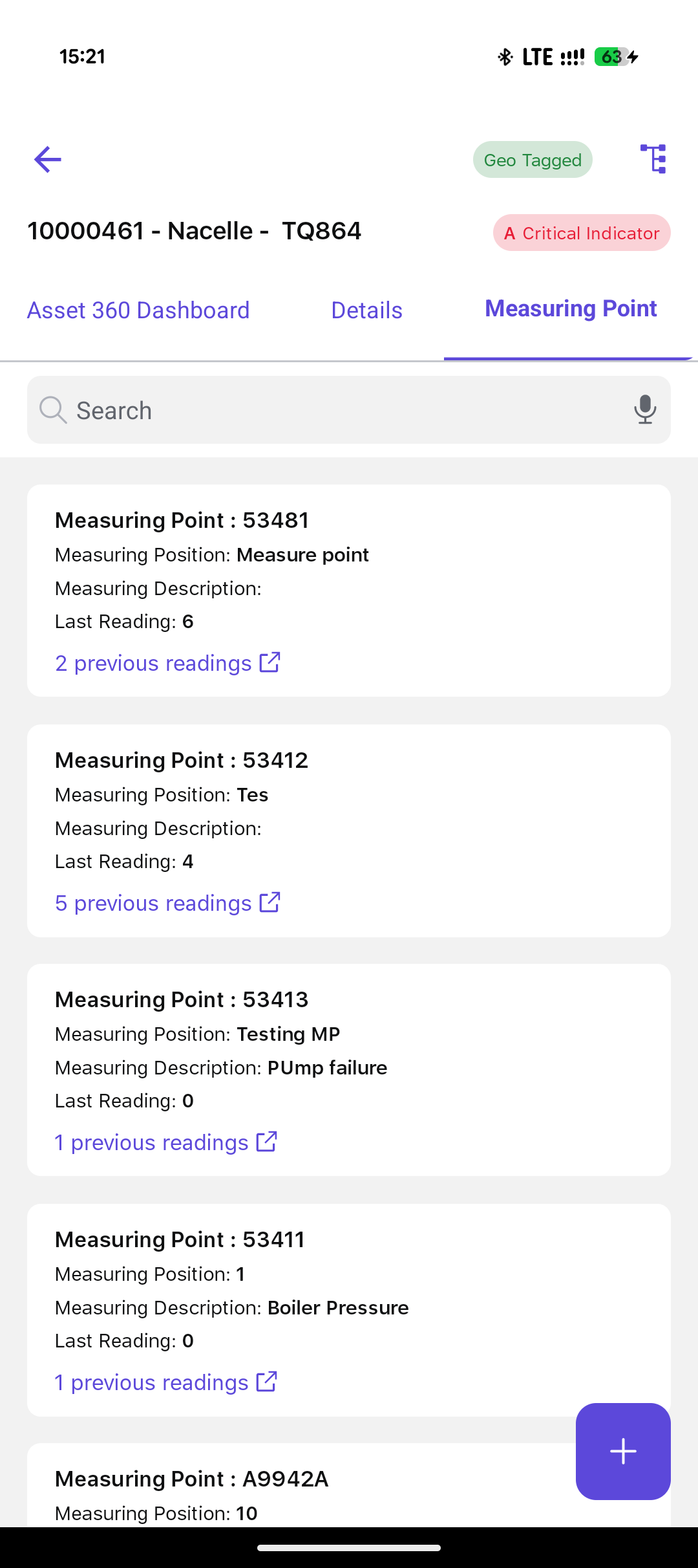- Add a New Measuring Point by tapping the Add icon. For more information, see Create a Measuring Point.