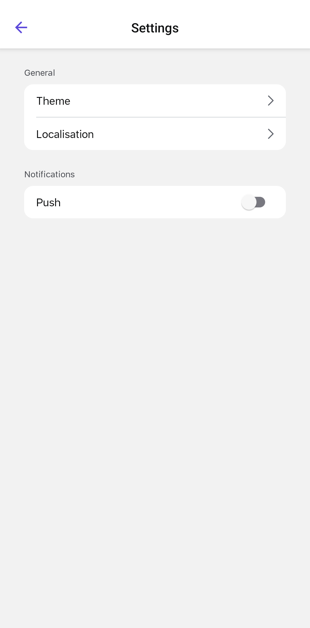 The Settings section allows you to personalize your experience by adjusting the app’s theme and language and enabling push notifications. These options enhance visibility and usability, ensuring a seamless experience tailored to your needs.
