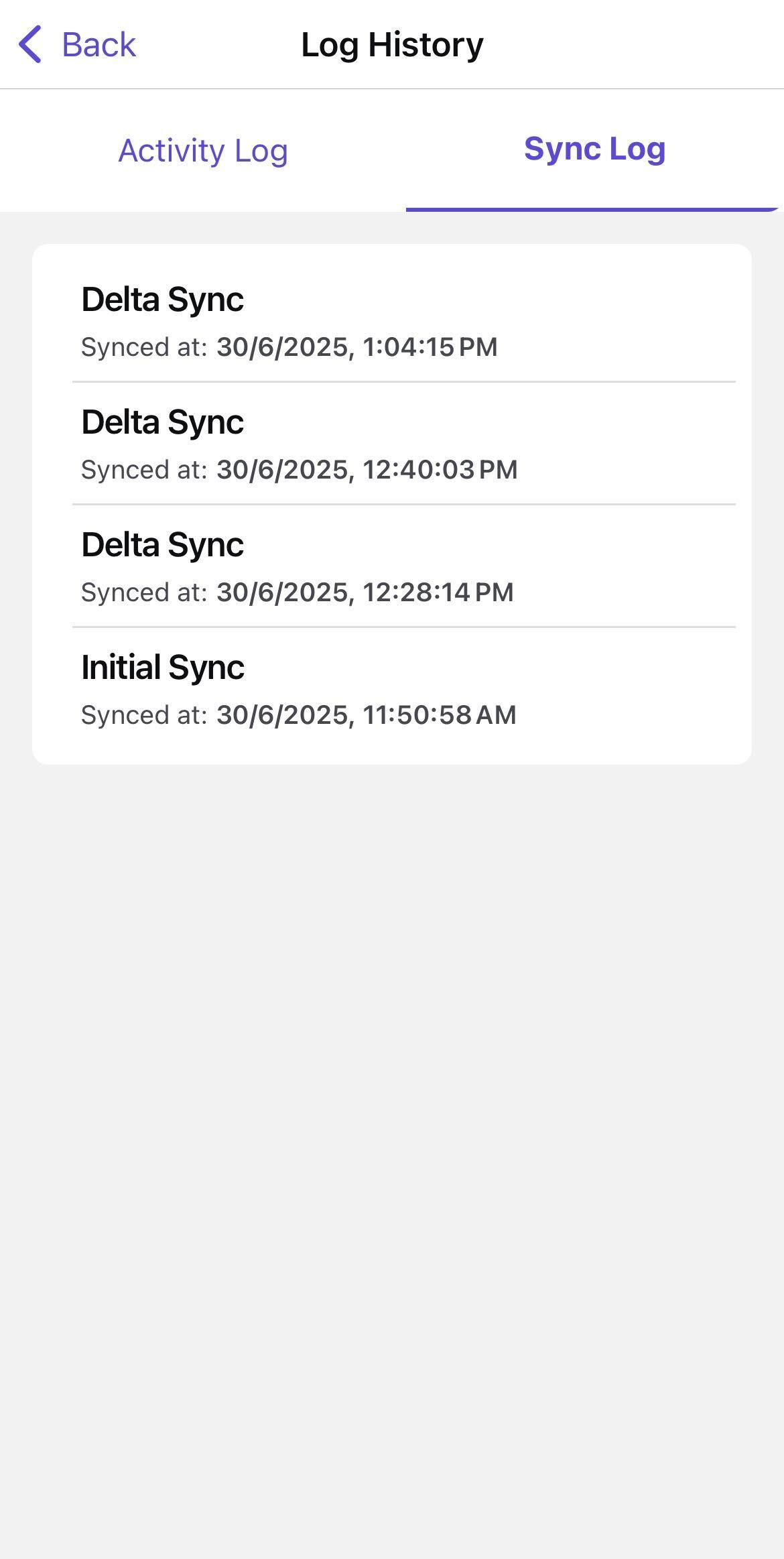 This tab displays the latest sync events and updates as soon as they occur. Logs are updated in real time, with no need to manually refresh the screen.Figure 2. Sync Log