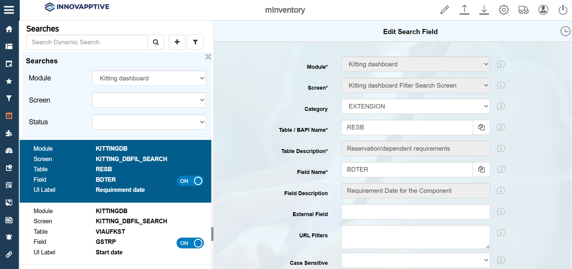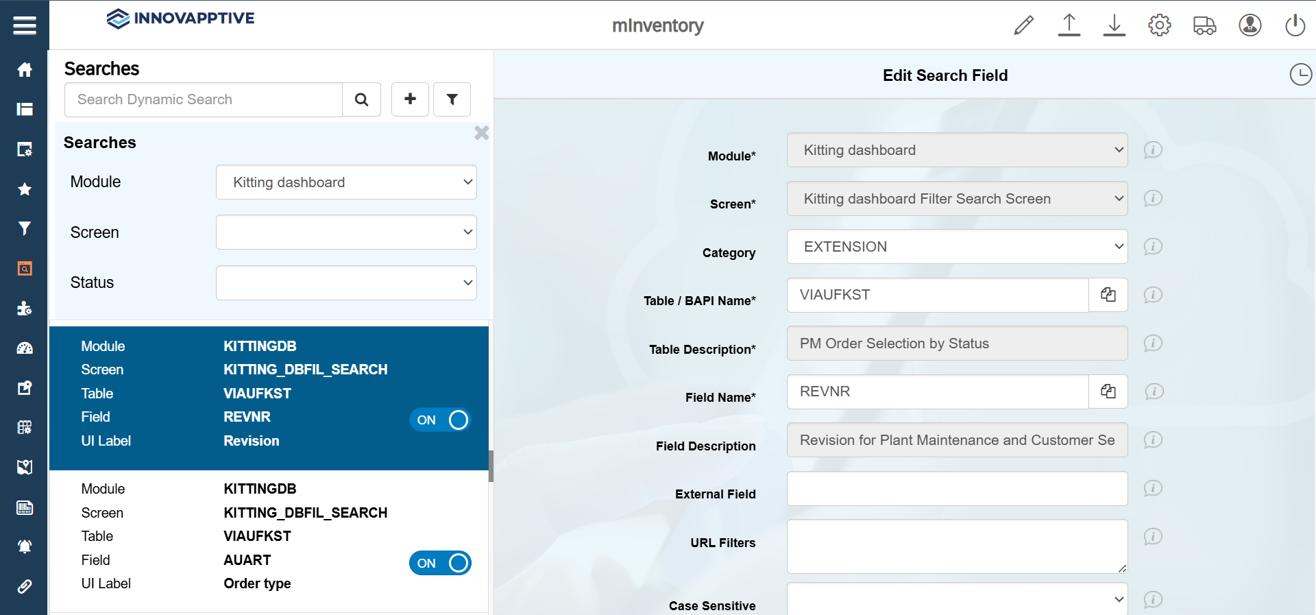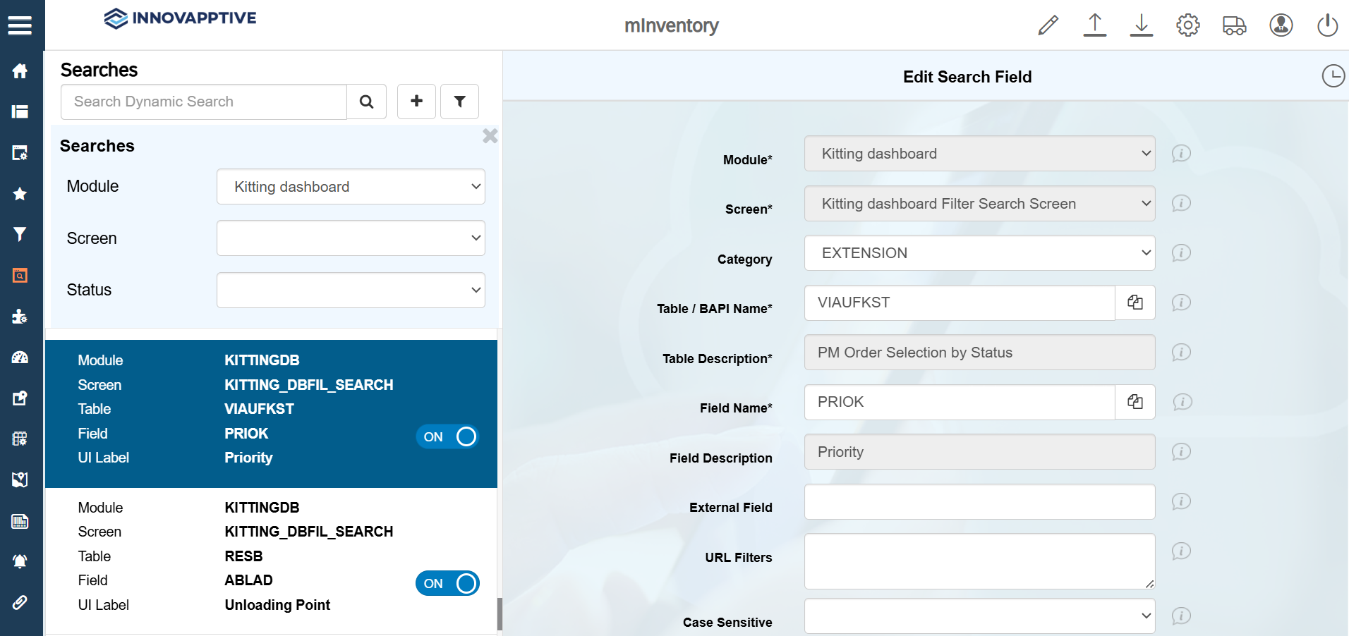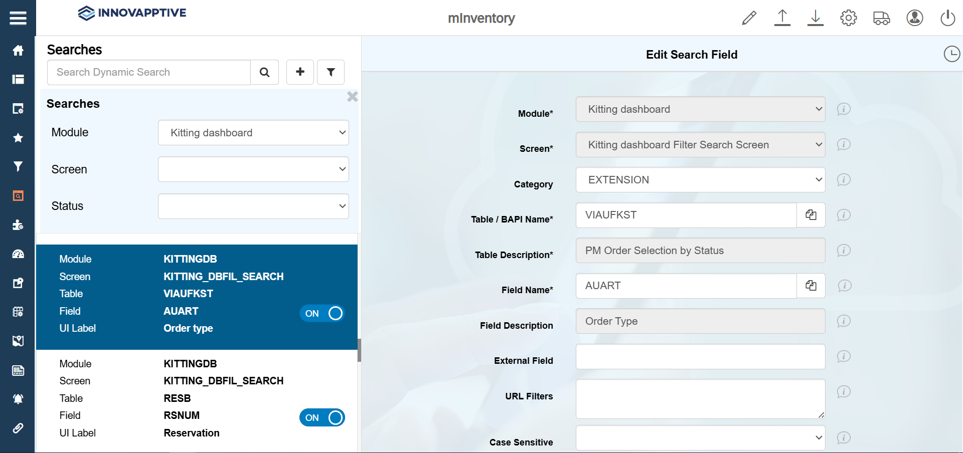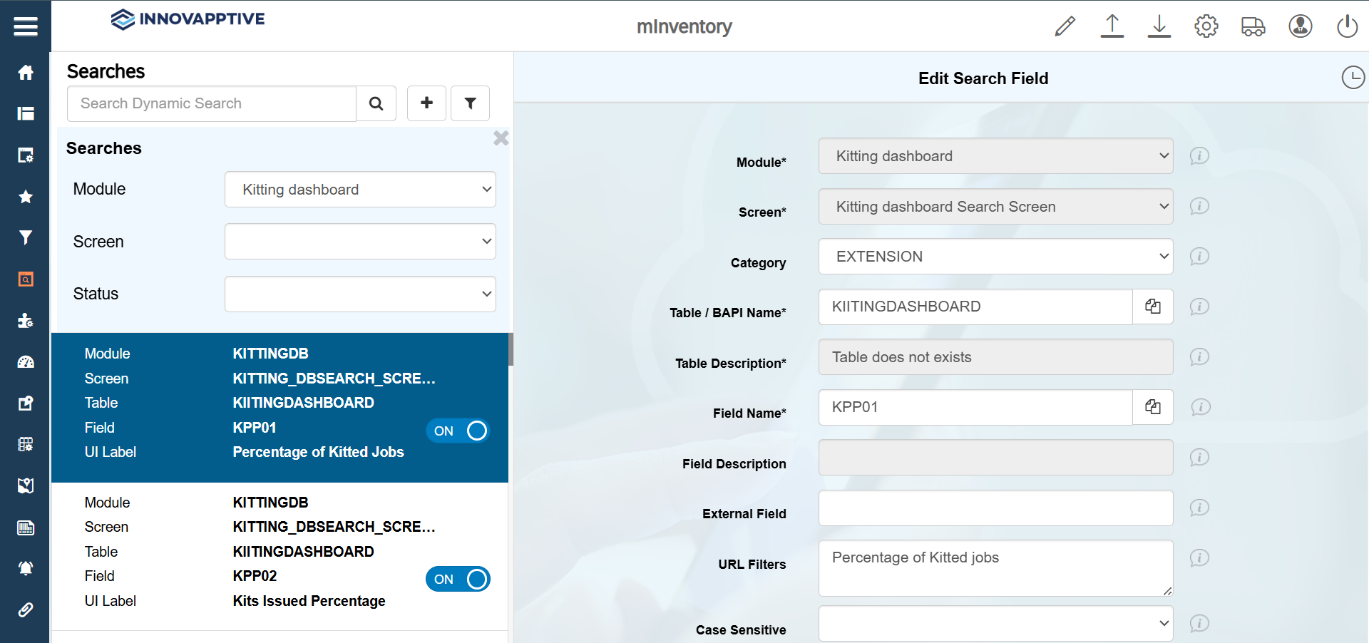 - Click the Filter icon and select the Module as Kitting dashboard.