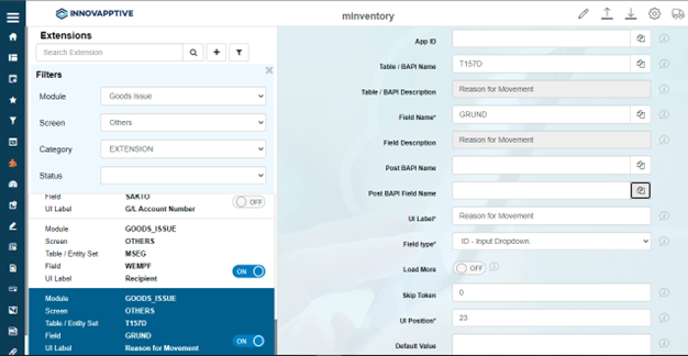 3. Select the extension with the label name Reason for Movement on the left side.