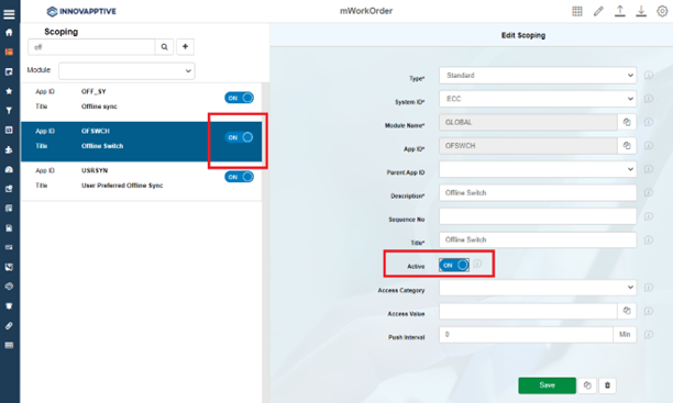 Figure 1. Enable Offline Toggle Switch