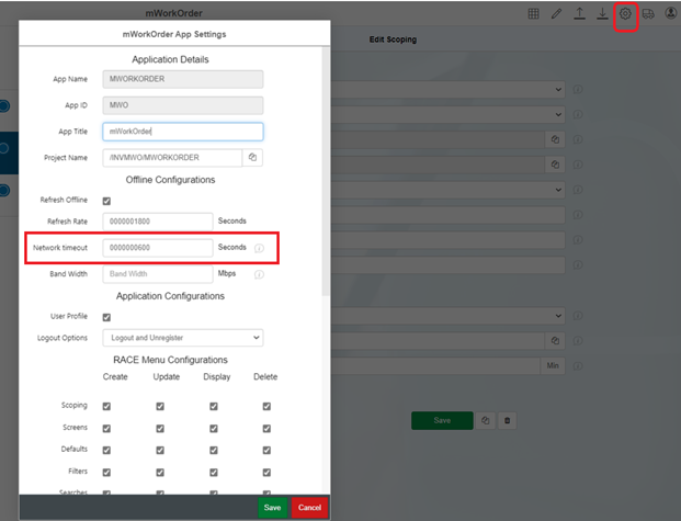 Configure Offline Toggle Switch and Network Timeout