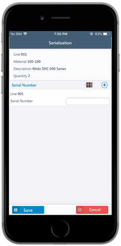 • Tap the Scan button in the Enter Serial No. field to scan the serial numbers or tap the Add icon to add the serial numbers manually.