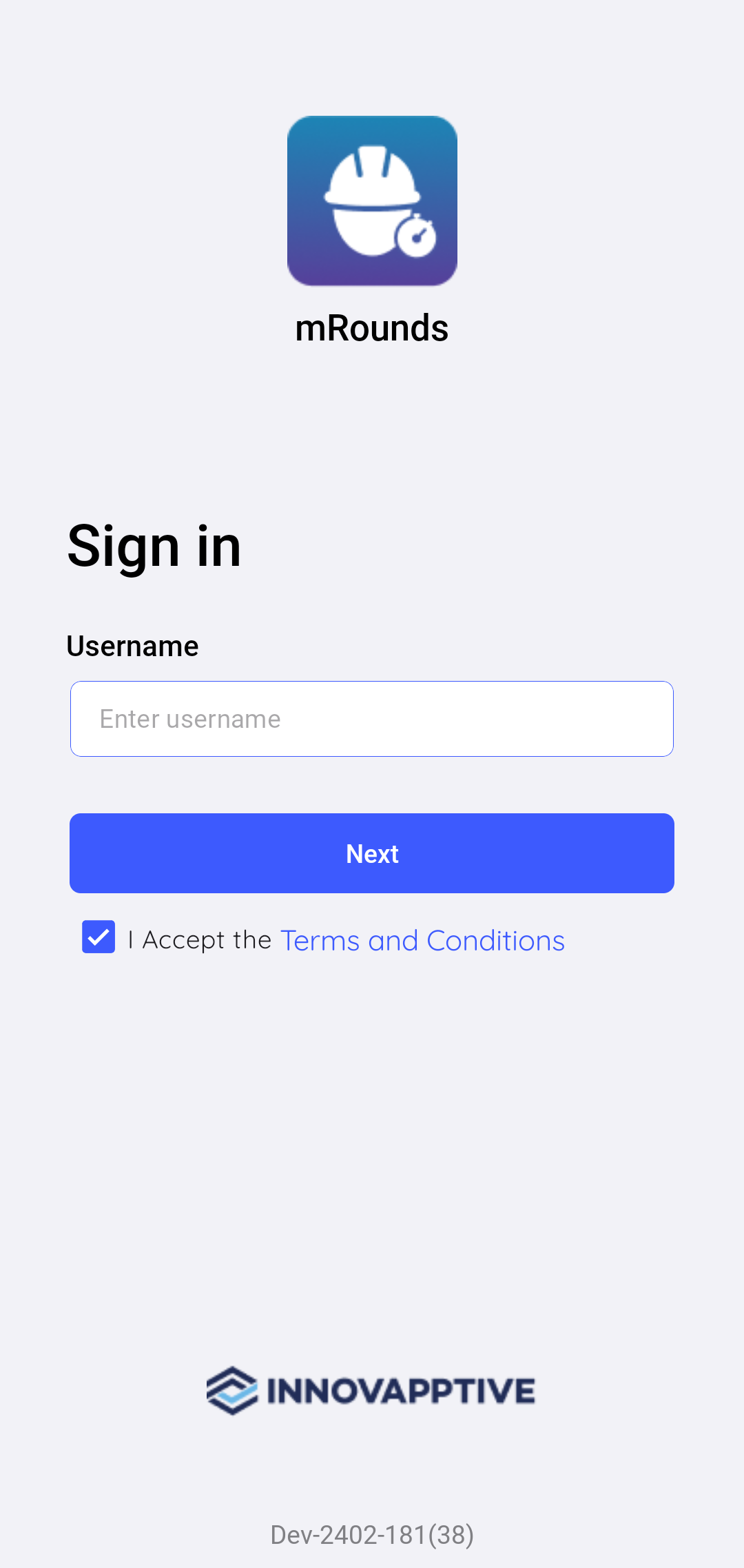 You can log in to the mRounds application using the standard login procedure, which involves entering a company or domain, username, and password. When users log in for the first time, additional tasks include creating a passcode and enabling Touch ID or Face ID for quick login.