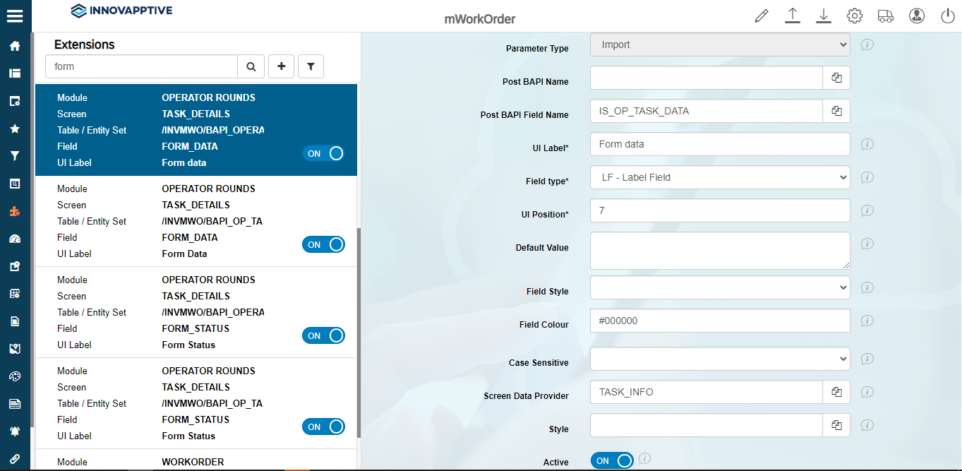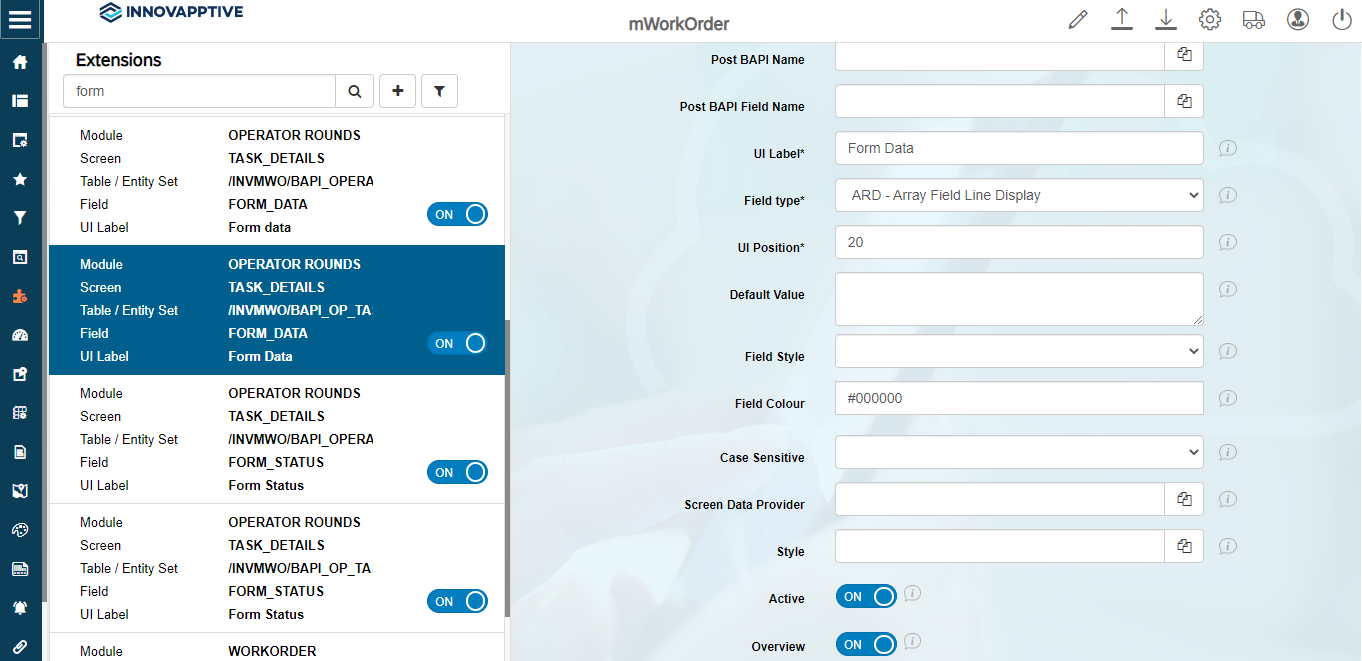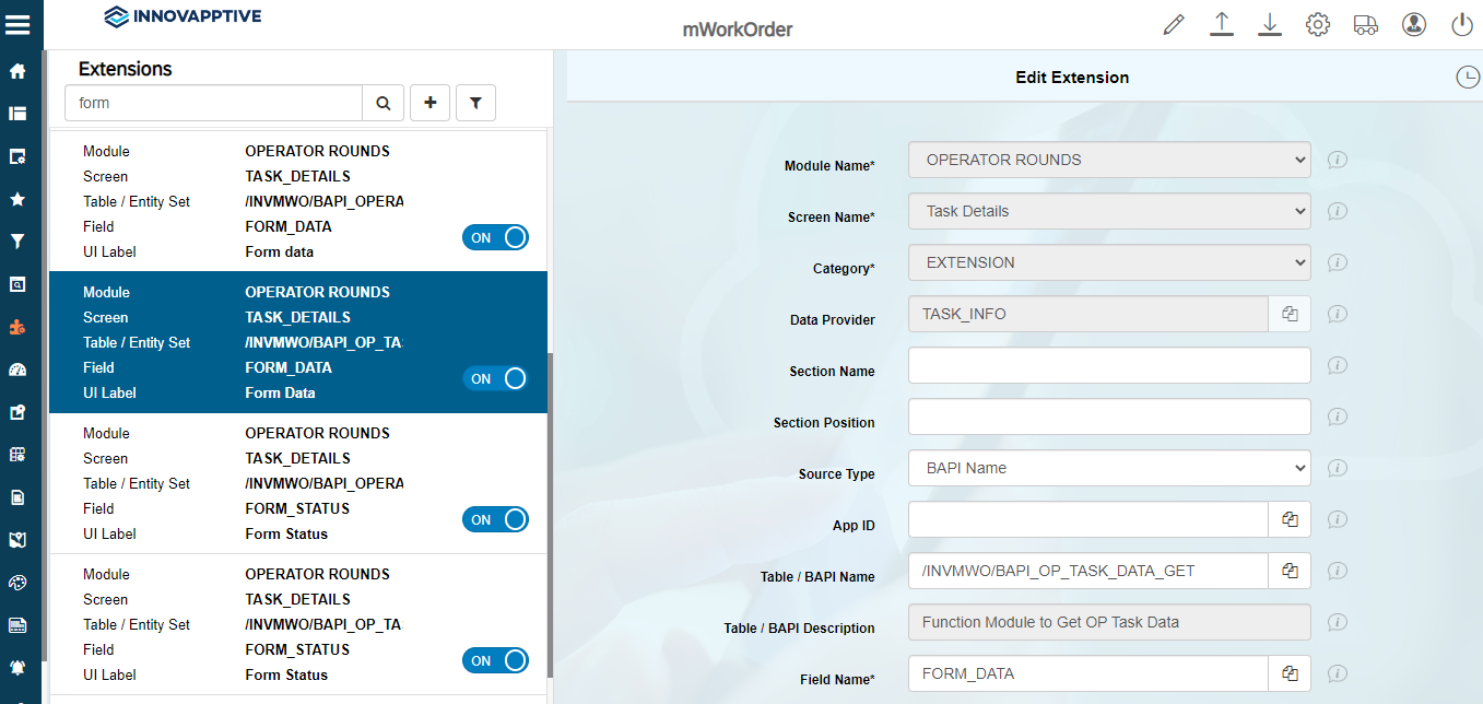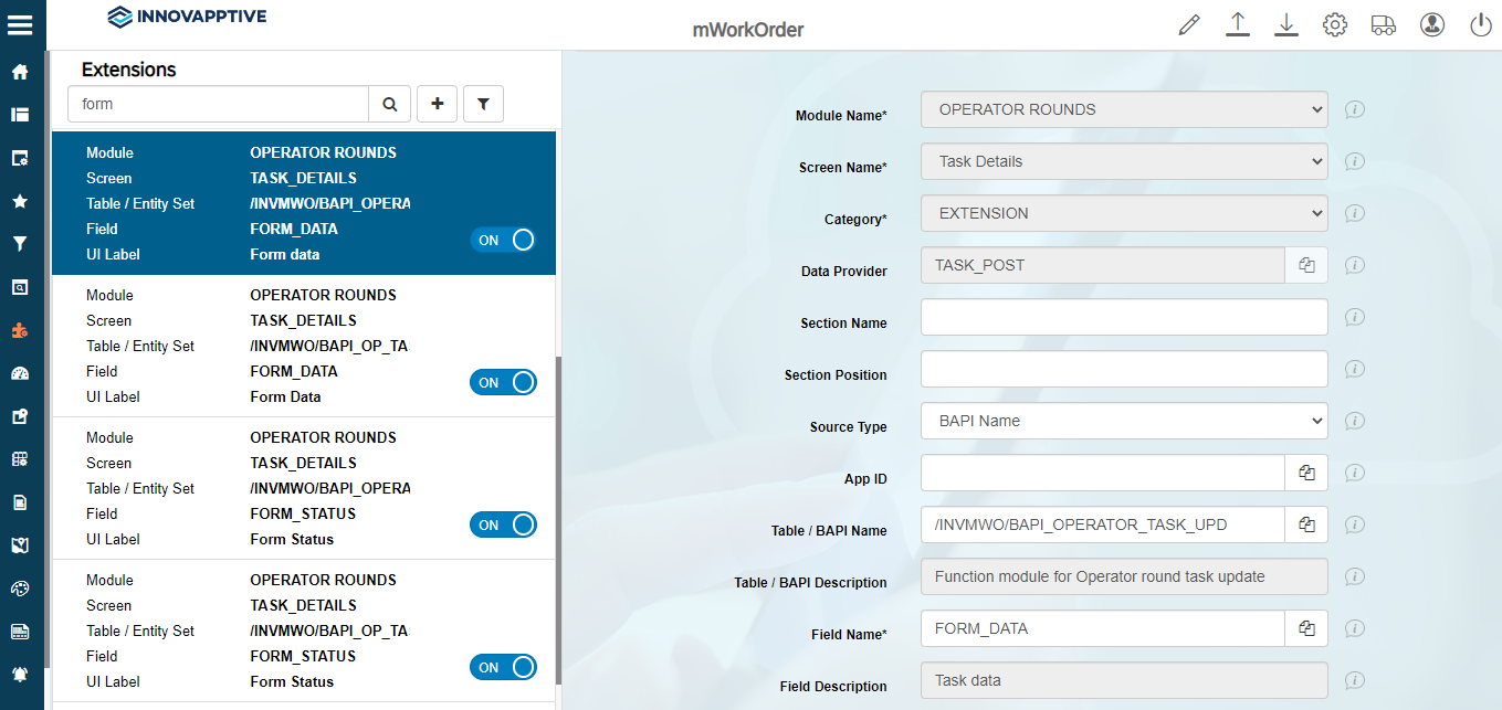 This configuration allows you to see the Form data in the Operator Rounds module to execute the form while executing a task.