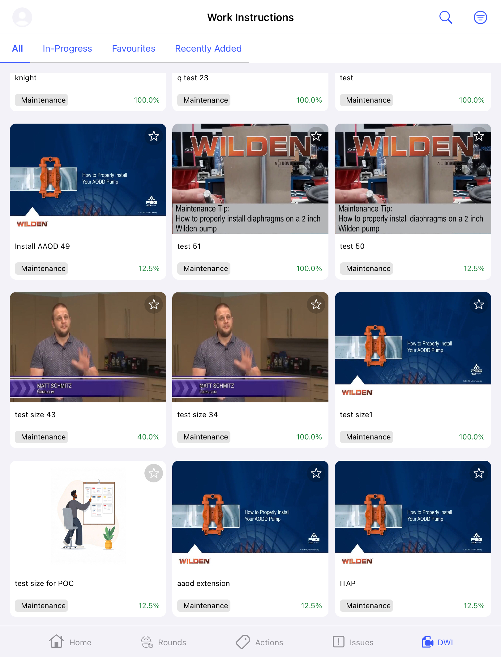 By default, it opens the All tab, where you can see all the work instructions available.Note:On a specific work instruction tile, tap the star icon to save the work instructions in your favourites.